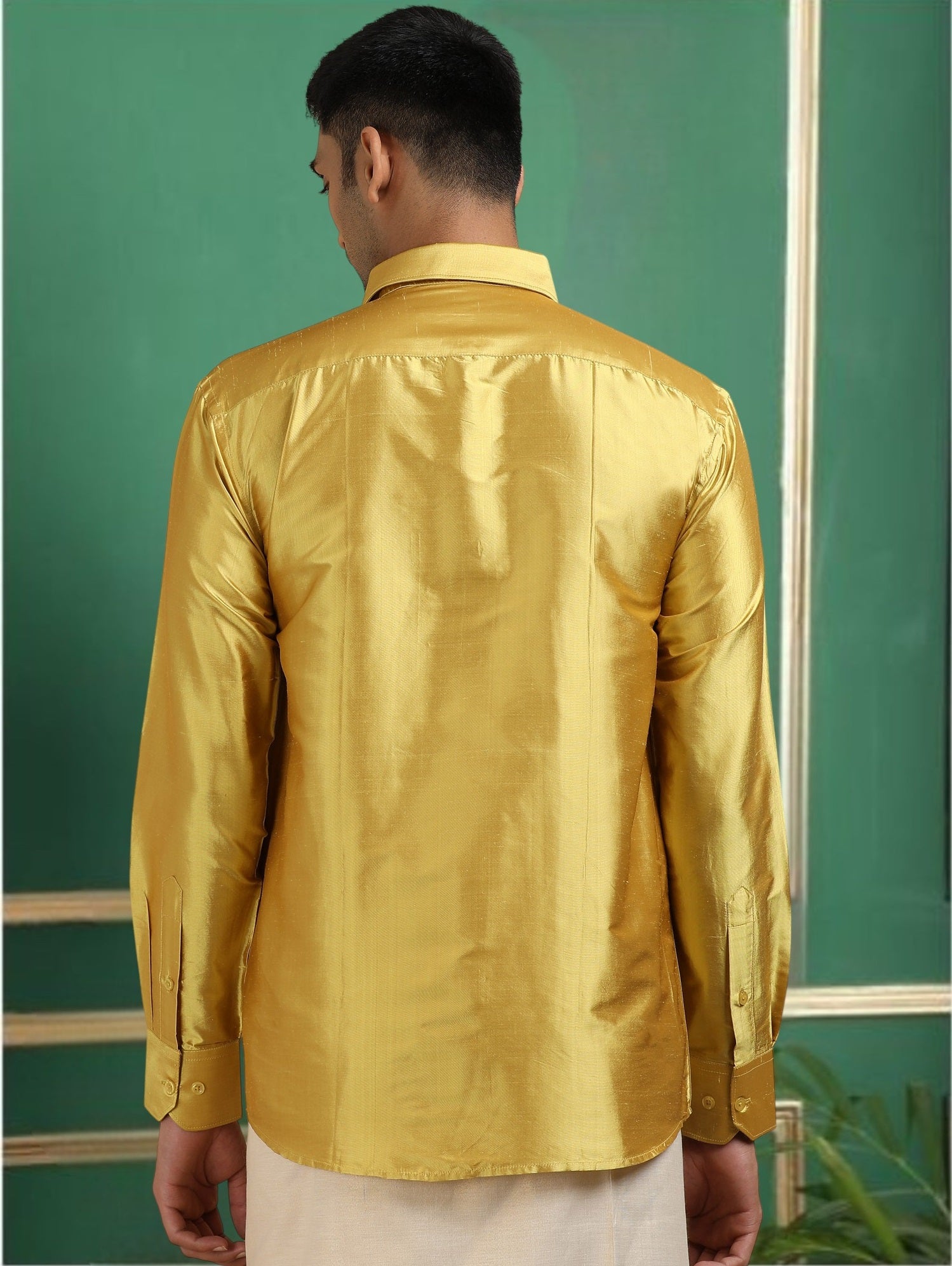 Tattva Men Green Gold Toned Pure Silk Shirt