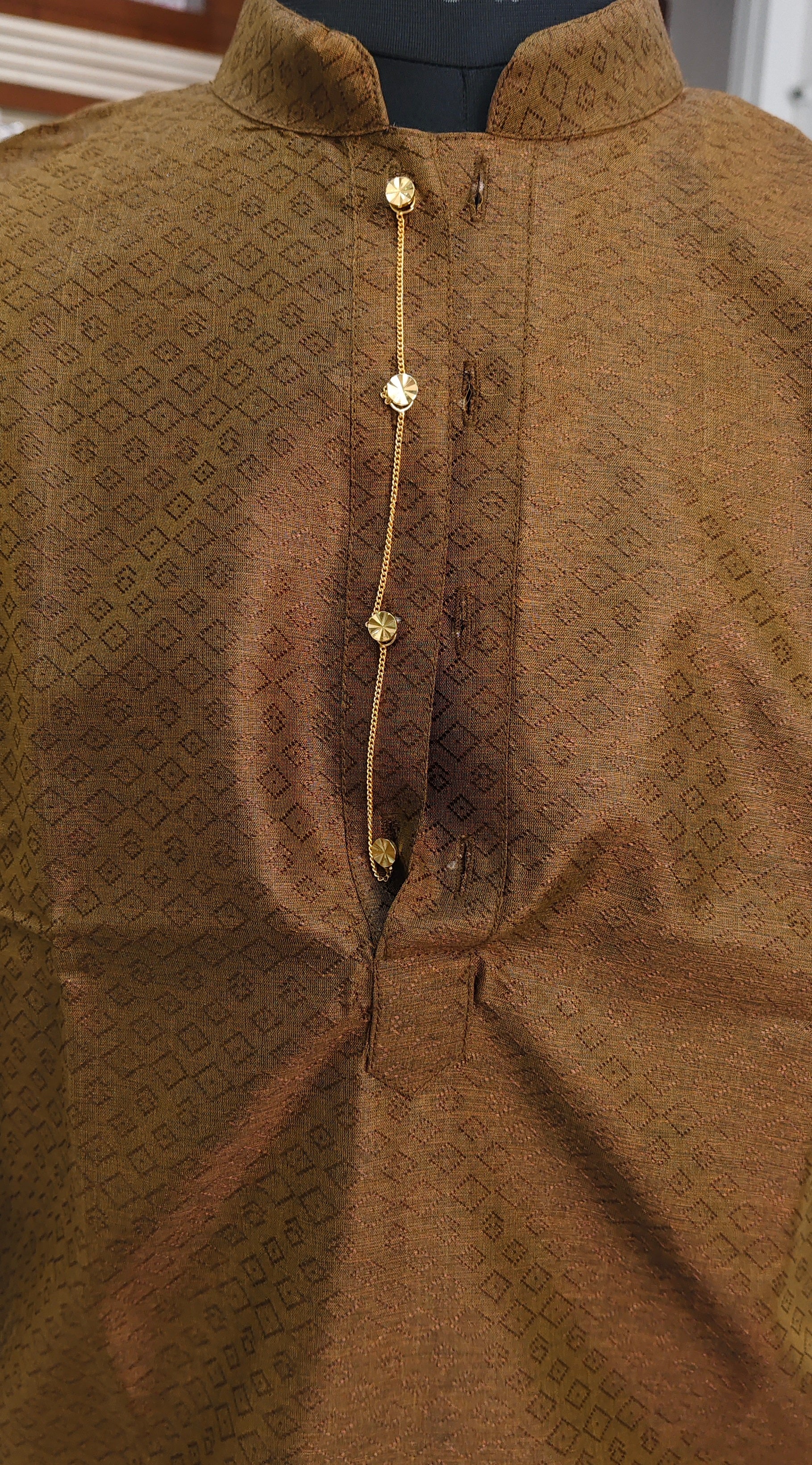 Step into effortless elegance with this solid toned woven design short kurta, designed with a rich satin-like finish and a sharp mandarin collar. Its minimalist detailing and tailored fit make it a versatile choice for festive evenings, celebrations, and refined ethnic occasions.