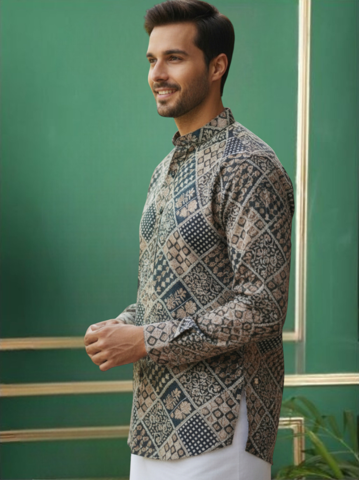 Tattva Men's Printed Super Short Kurta. Featuring eye-catching prints and a contemporary cropped silhouette, this kurta blends comfort with creativity. Crafted from soft, breathable fabric, it’s perfect for casual gatherings, festive fun, or relaxed weekend looks. Designed for comfort and everyday style, it pairs perfectly with jeans or chinos.