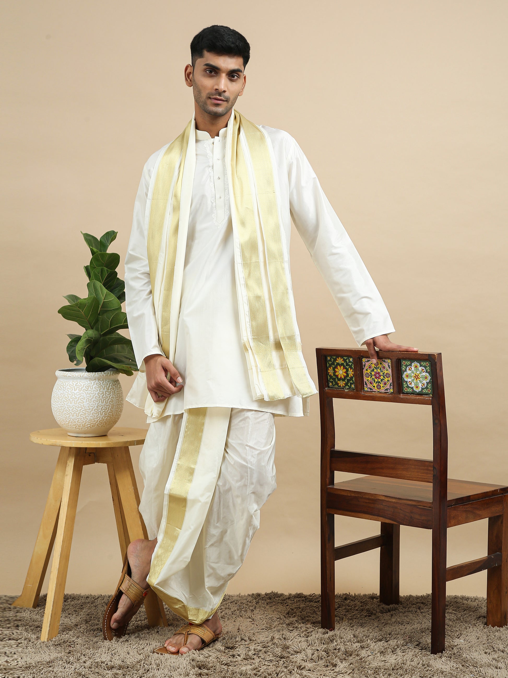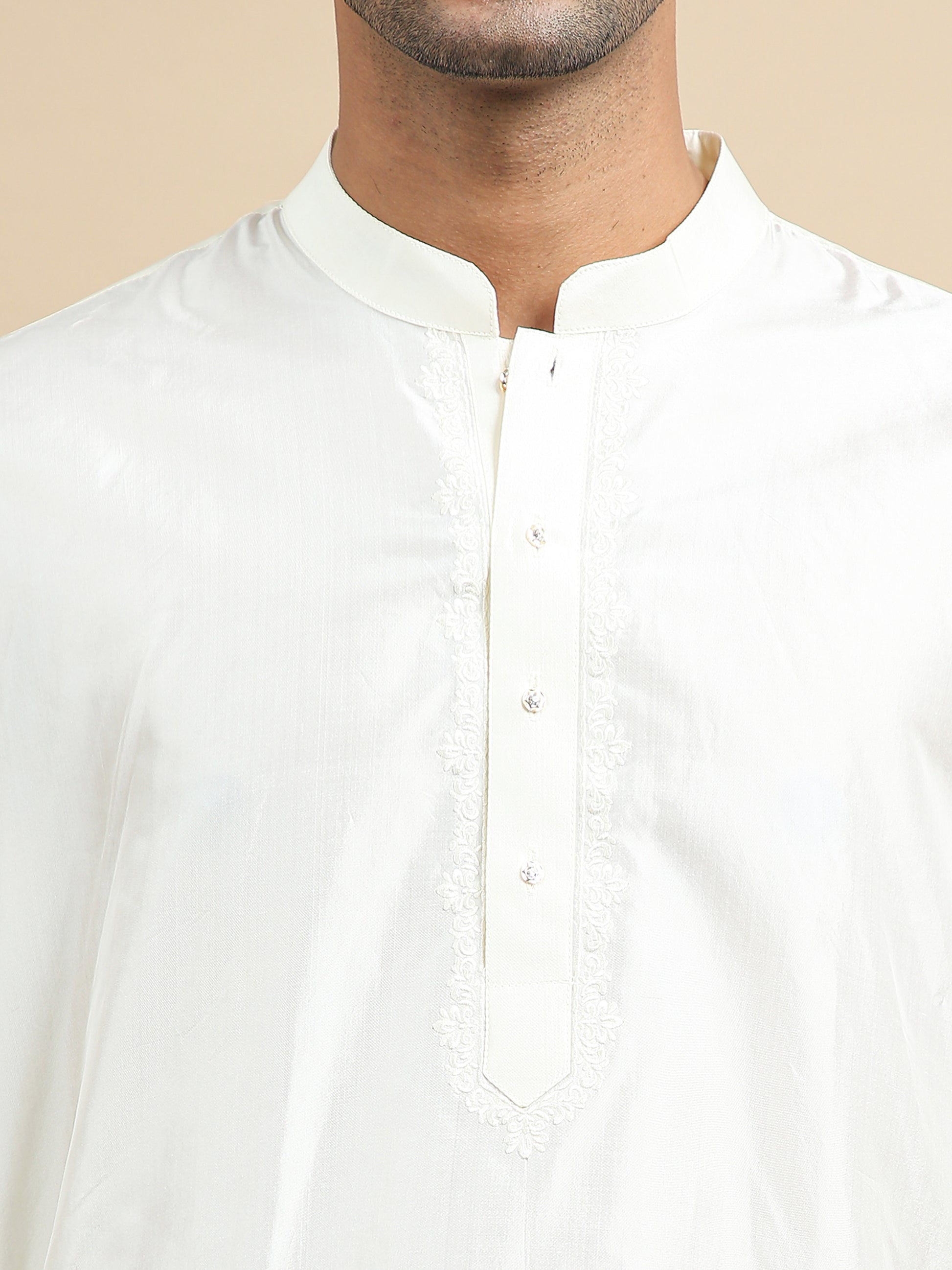 The Tattva Men's Ethnic Kurta Set is a perfect blend of tradition and elegance, featuring a Pure Silk kurta top paired with an Art Silk bottom and a matching shalya. Designed for festive and special occasions, the kurta showcases intricate embroidery on the placket, adding a touch of sophistication to its classic silhouette. This set offers a refined ethnic look with premium fabrics and attention to detail.