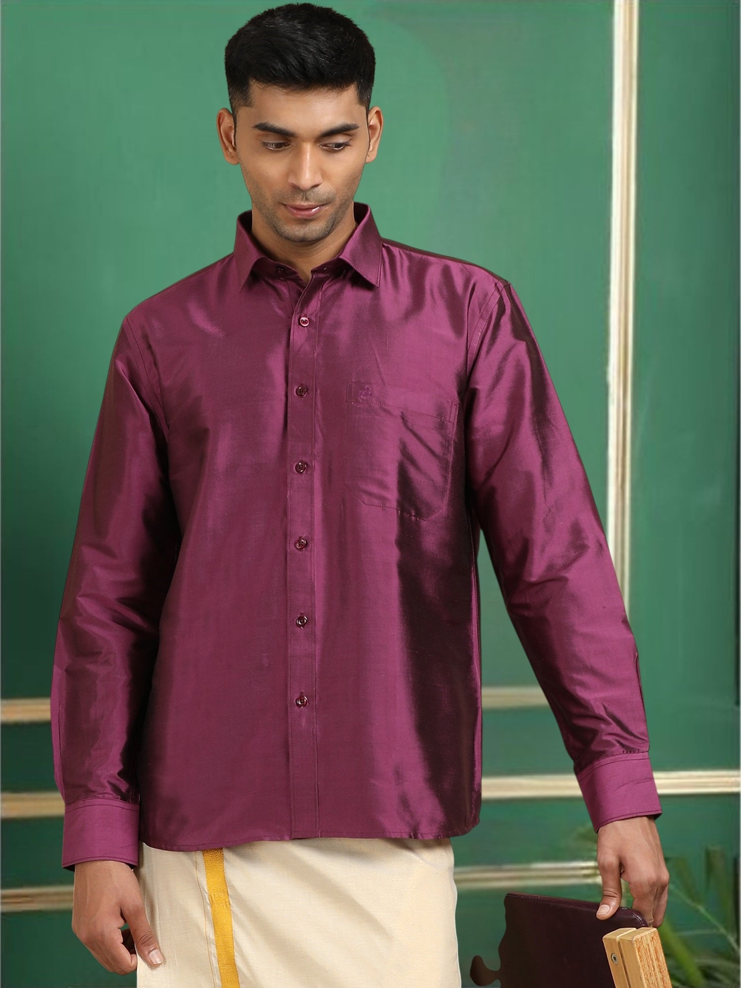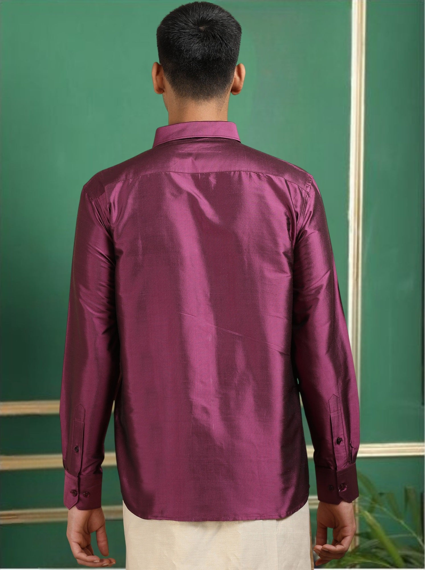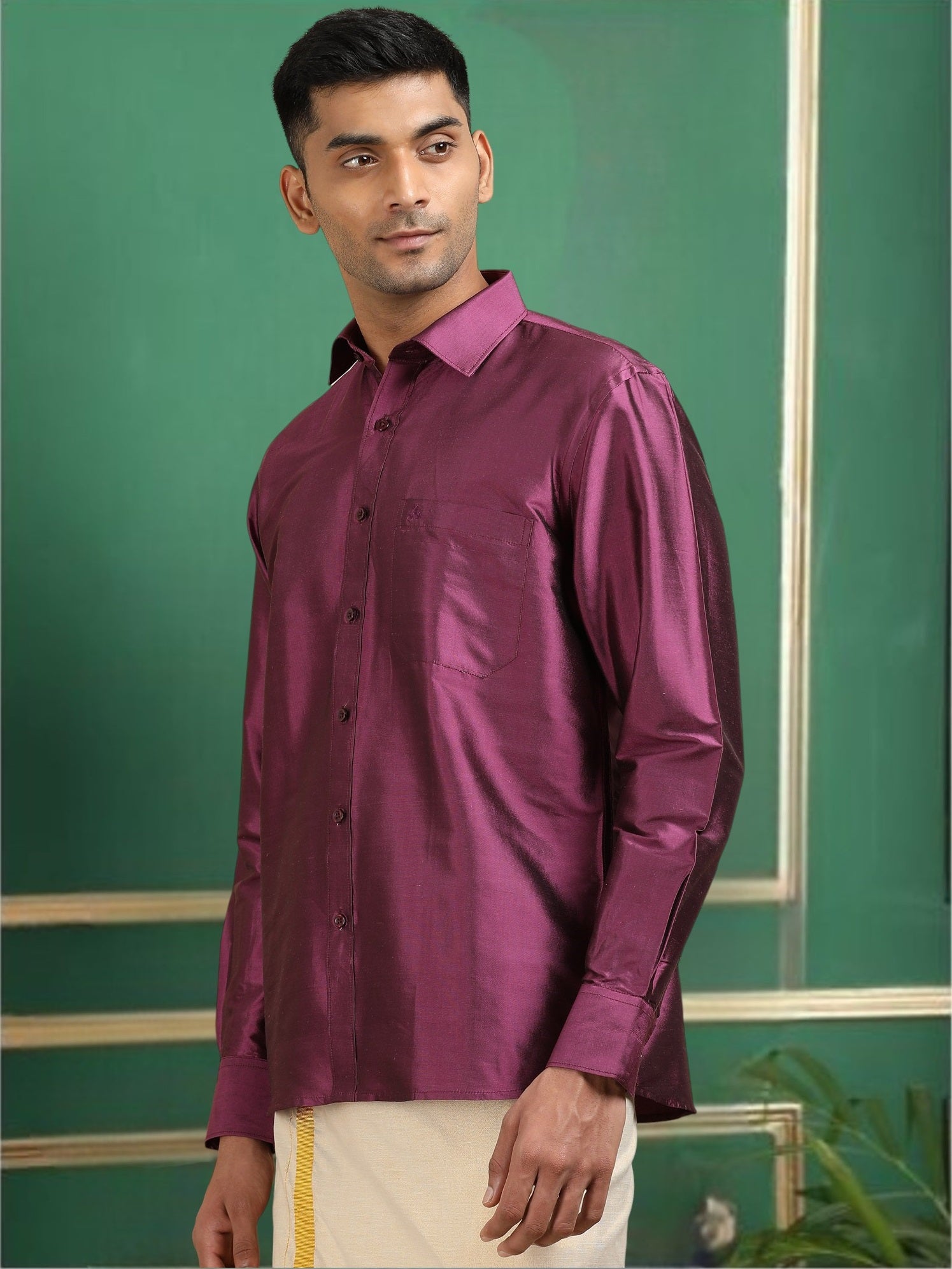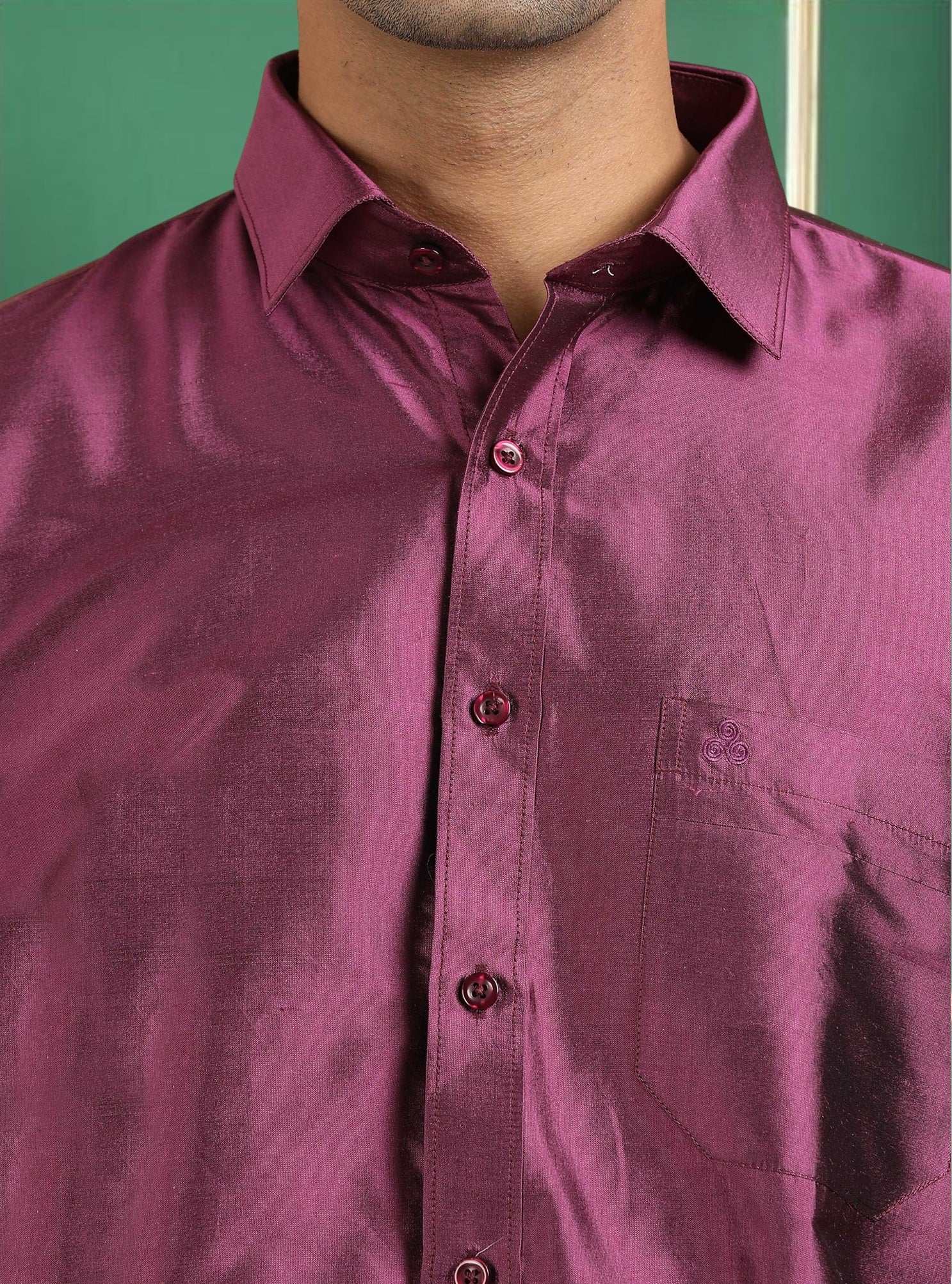 Flaunt your Formal/Festive looks with this solid Pure Silk shirt for any occasion and leave a persisting impression wherever you go. This Piece comes in full sleeves, a Straight Hem, and a patch pocket.