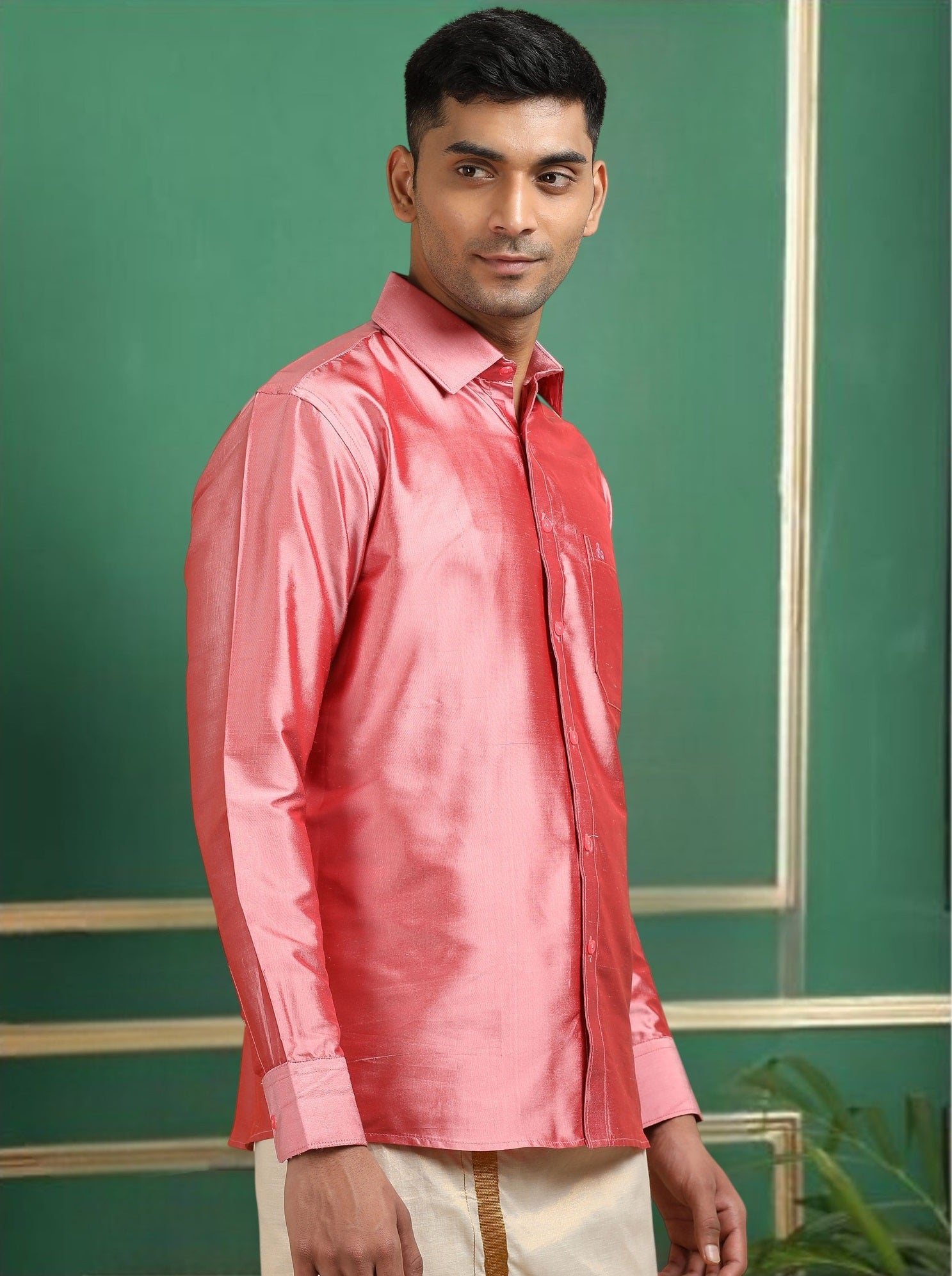 Flaunt your Formal/Festive looks with this solid Pure Silk shirt for any occasion and leave a persisting impression wherever you go. This Piece comes in full sleeves, a Straight Hem, and a patch pocket.