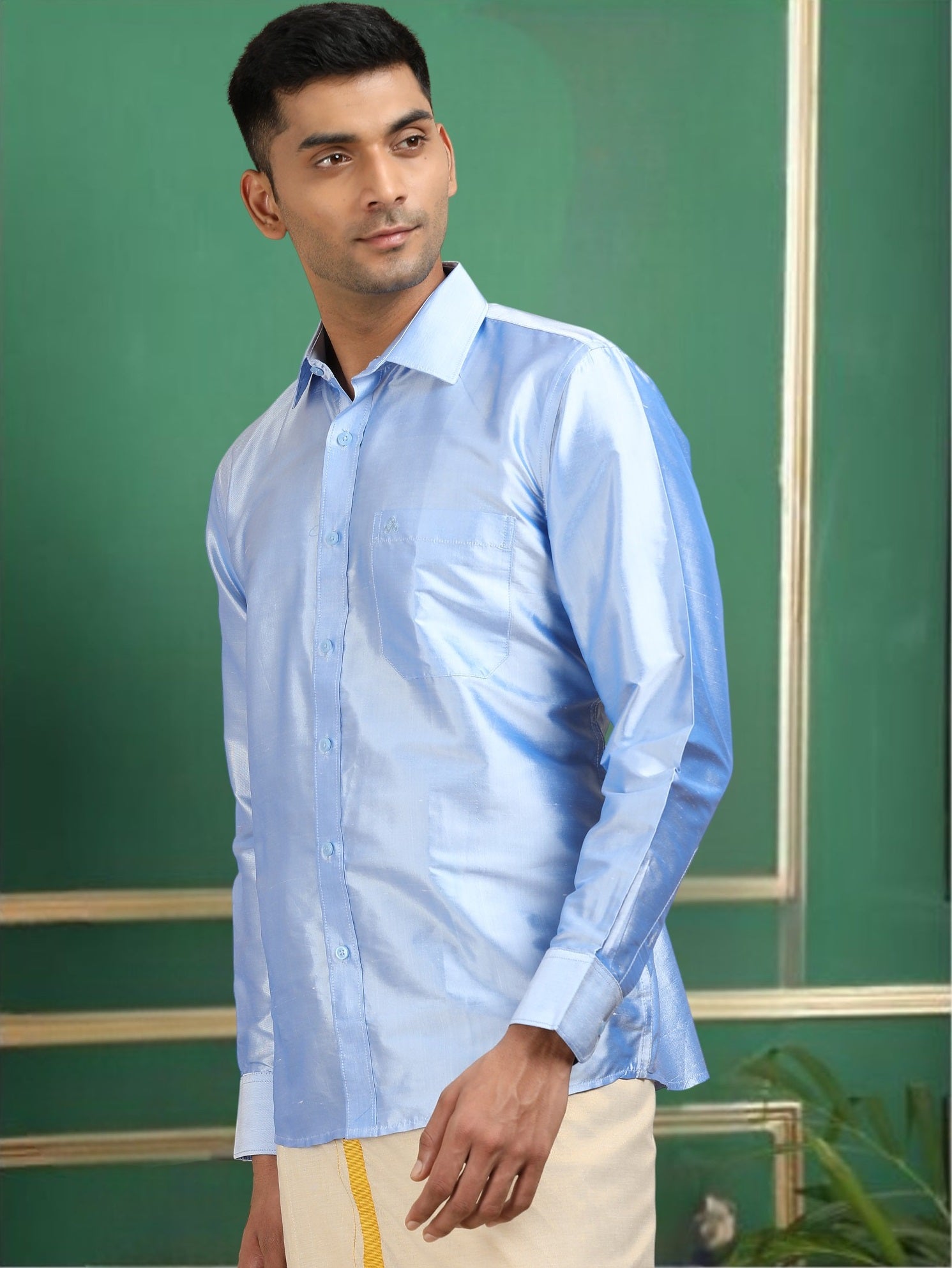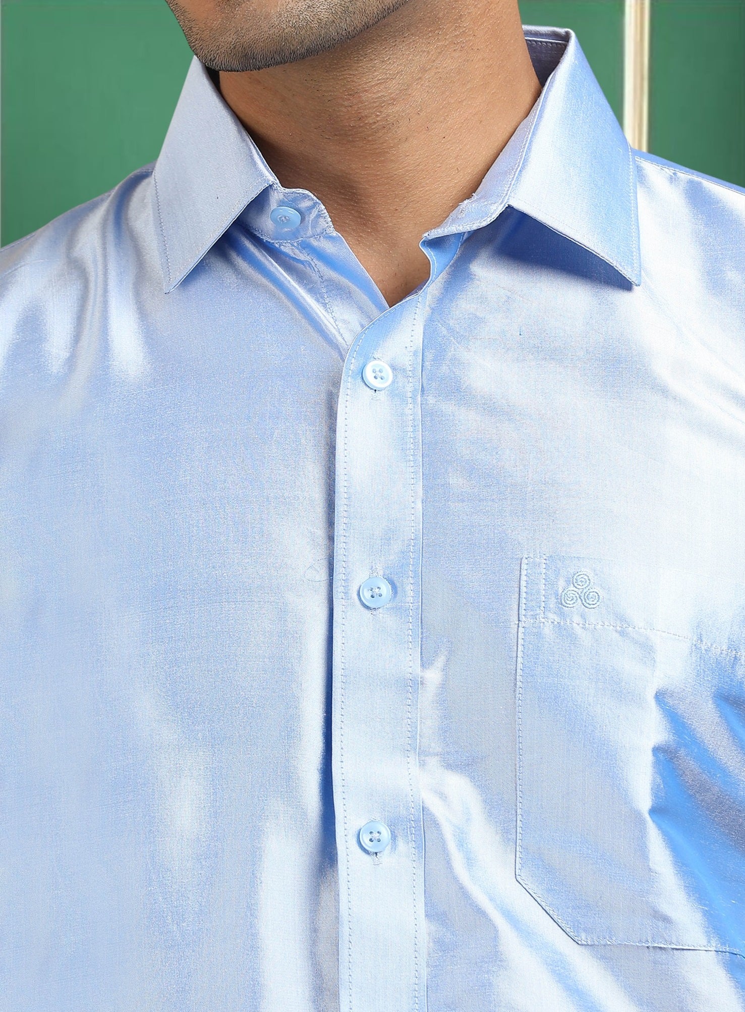 Tattva Men Sky Blue Toned Pure Silk Shirt