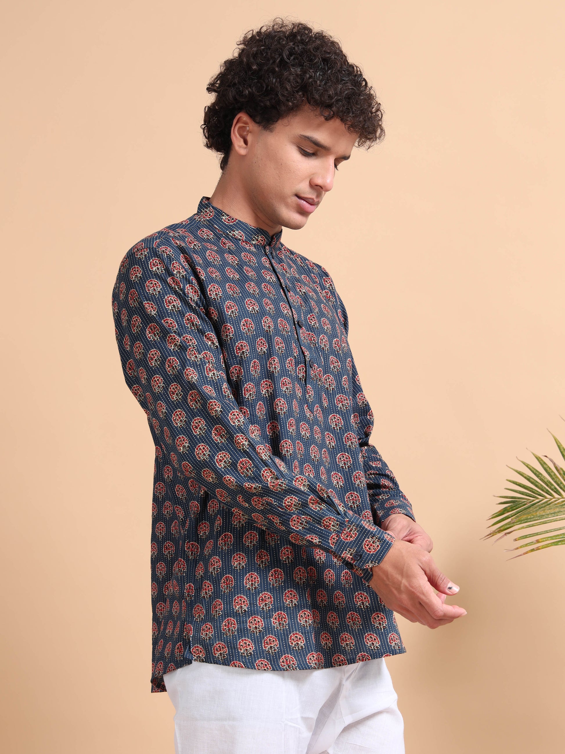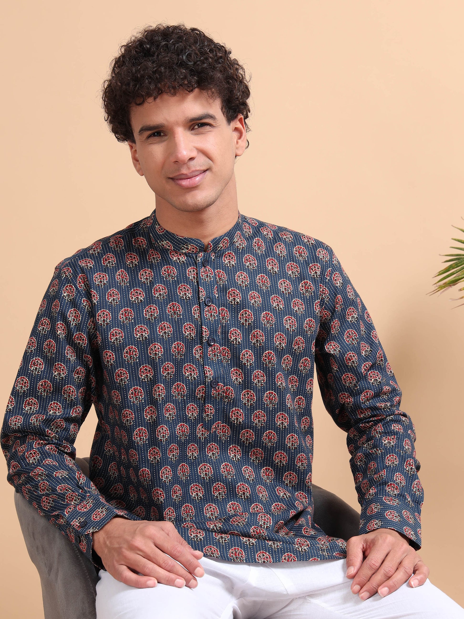 Tattva Men's Printed Super Short Kurta. Featuring eye-catching prints and a contemporary cropped silhouette, this kurta blends comfort with creativity. Crafted from soft, breathable fabric, it’s perfect for casual gatherings, festive fun, or relaxed weekend looks. Designed for comfort and everyday style, it pairs perfectly with jeans or chinos.