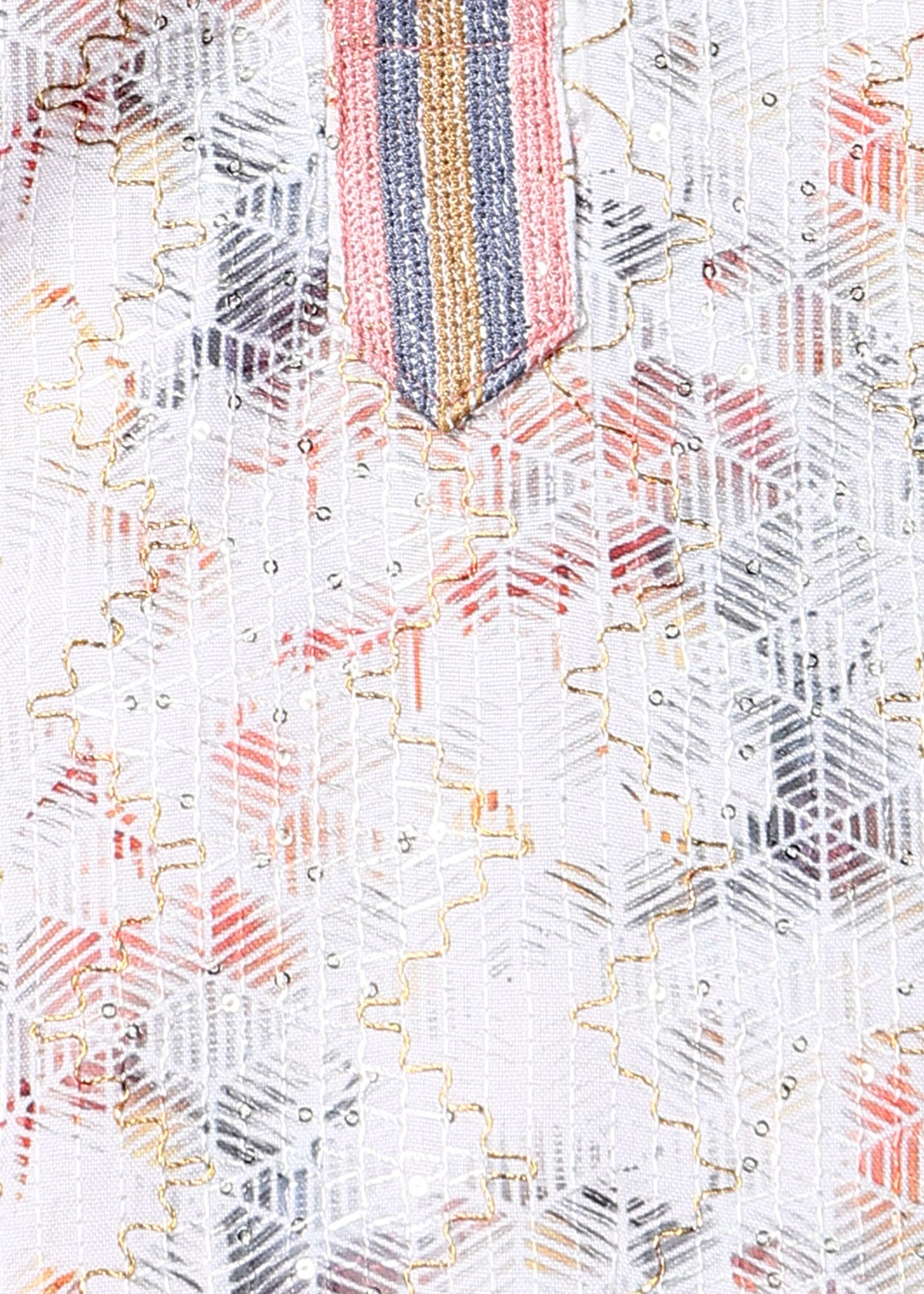 Tattva Men's Multi Colored Unique Men's Embroidered Threadwork Long Kurta features a mandarin collar, long sleeves, and a straight hem. The intricate embroidery adds a touch of elegance, making it perfect for any occasion. Pair it with a pyjama, dhoti, or jeans to showcase your stylish flair.