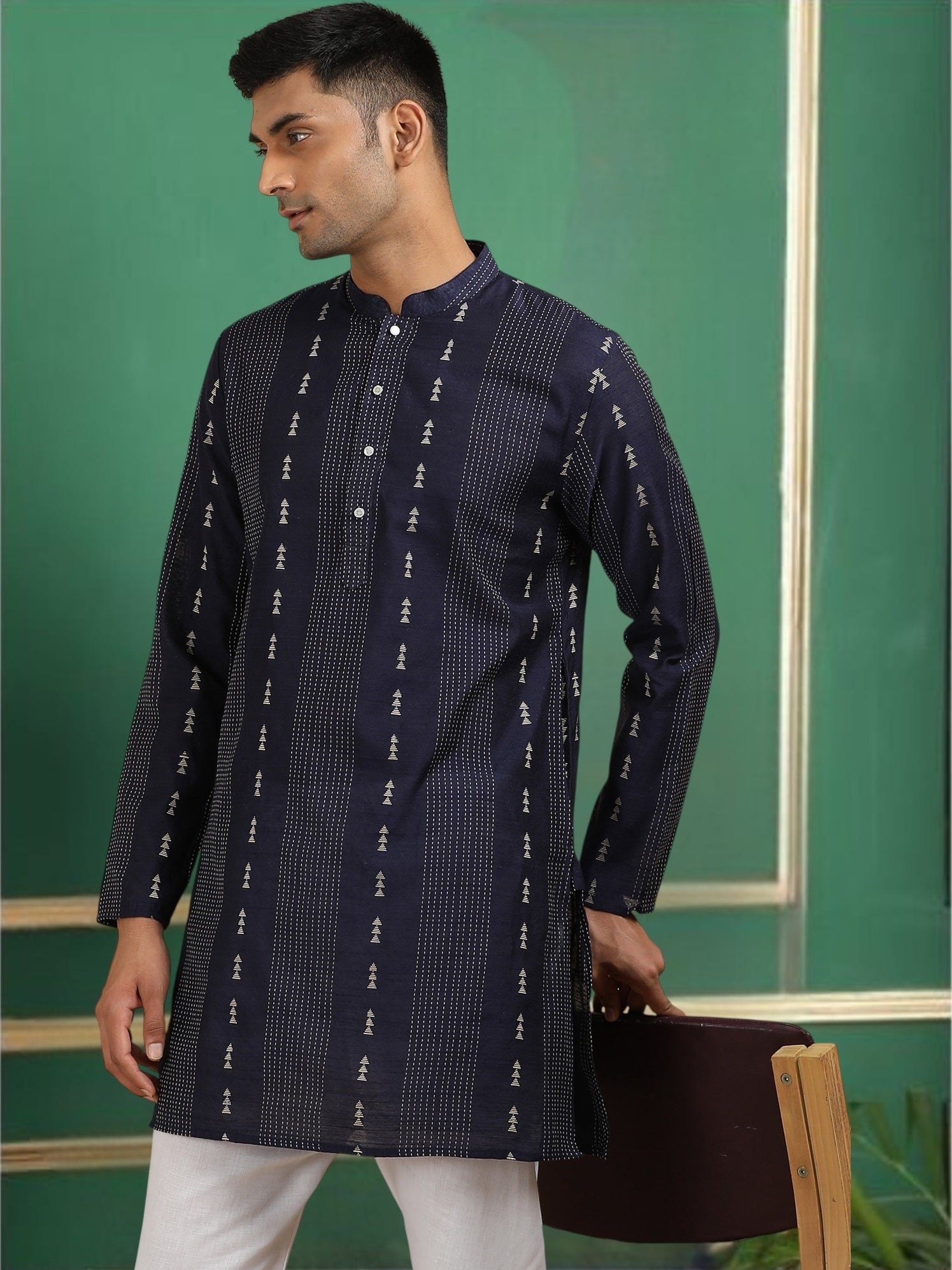The Tattva Navy Blue Toned Threadwork Short Kurta is a bold expression of traditional elegance. Featuring intricate threadwork on a rich red base, this kurta blends cultural craftsmanship with a contemporary short silhouette. The detailed embroidery adds depth and texture, while the vibrant tone makes it ideal for festive occasions or evening gatherings. Comfortable, stylish, and full of character, this kurta is perfect for those who want to make a statement with refined simplicity.