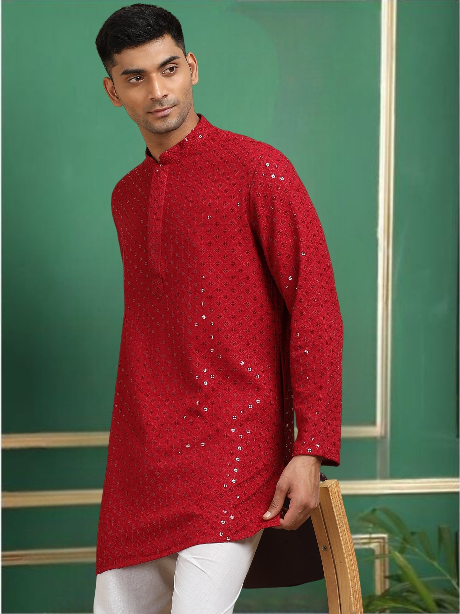 The "Tattva Red Toned Chikankari Short Kurta" offers a blend of tradition and style. Crafted with intricate chikankari embroidery, this kurta features delicate patterns in a rich red tone that highlights its cultural essence. The short design ensures comfort and versatility, making it perfect for casual outings or festive occasions. Lightweight and breathable, this kurta effortlessly combines elegance with ease, ideal for anyone looking to embrace timeless craftsmanship with a modern twist.