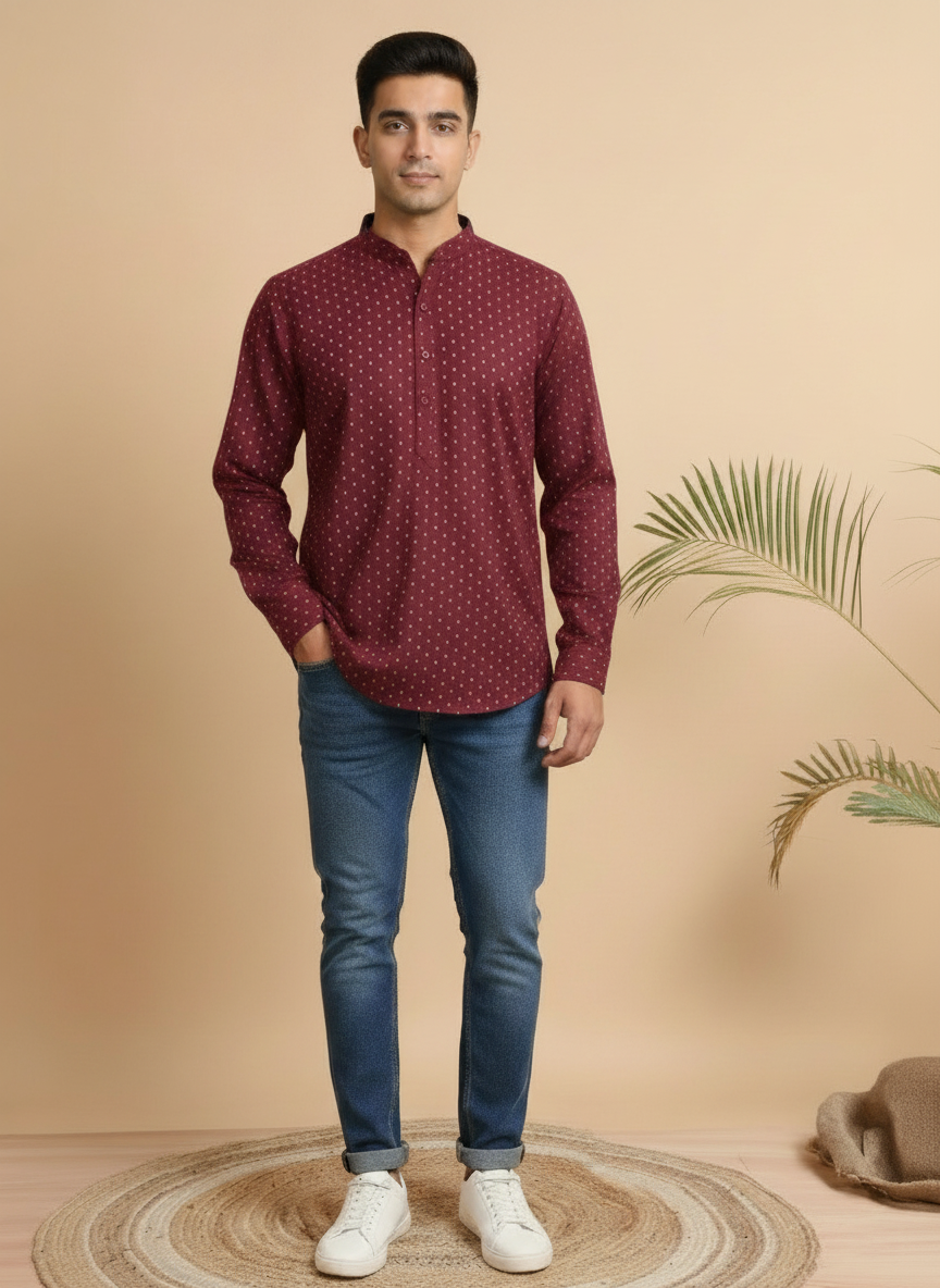 This short kurta blends handcrafted block prints with a contemporary silhouette. Designed for comfort and everyday style, it pairs perfectly with jeans or chinos.