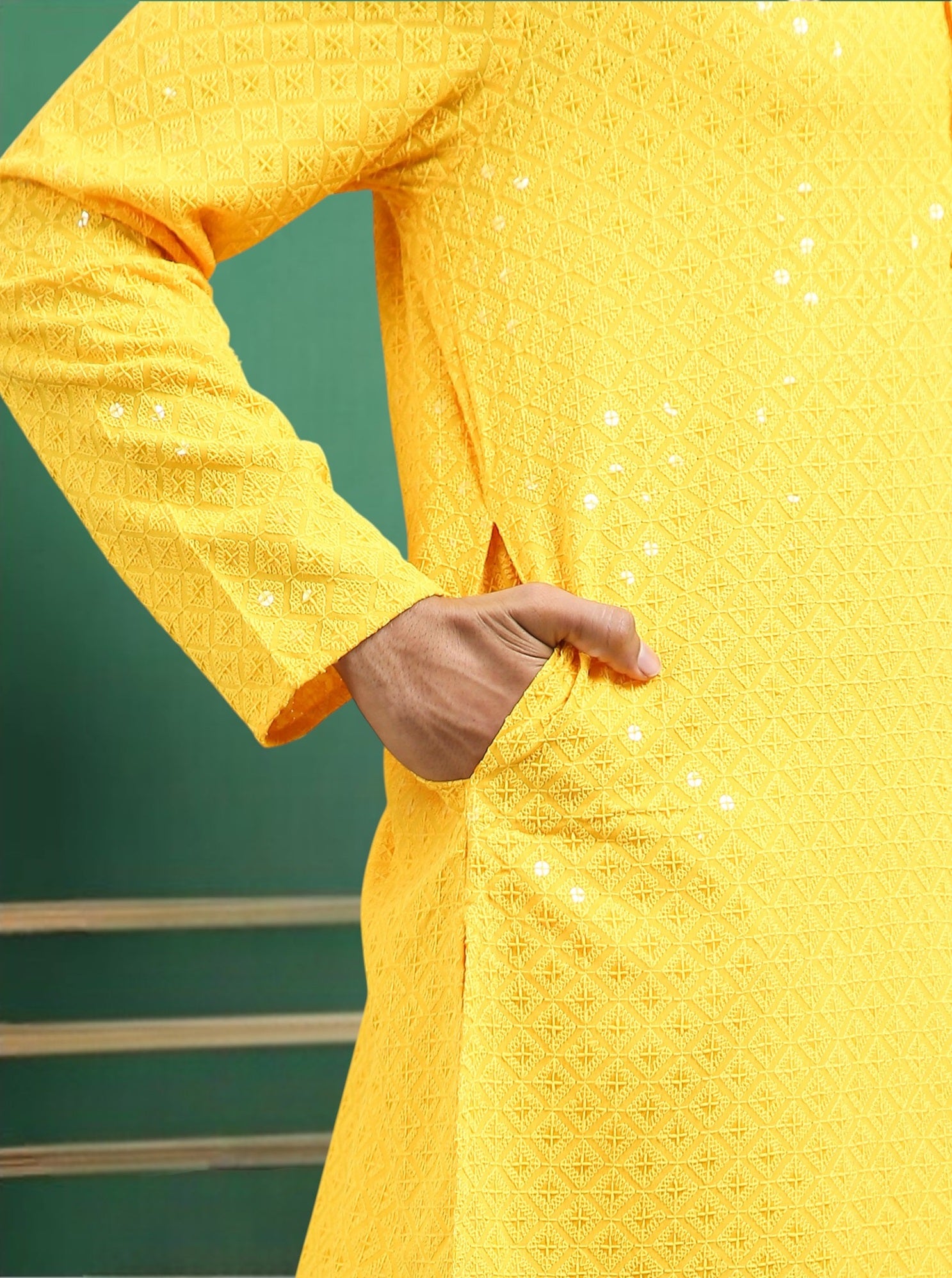 The Tattva Yellow Toned Chikankari Cotton Short Kurta blends timeless embroidery with everyday comfort. Crafted from breathable cotton, it showcases intricate chikankari work, making it a perfect pick for relaxed days or ethnic-inspired outfits